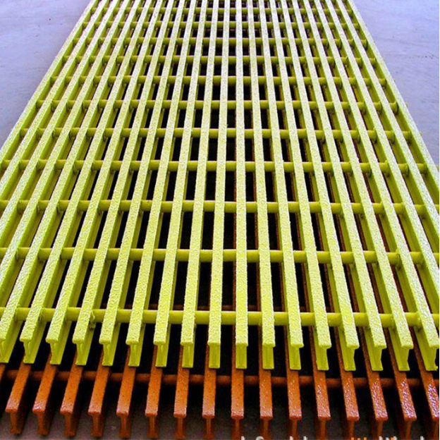Standard Fiberglass Pultruded Grating is made of a matrix of polyester resin. The reinforcement is achieved by a combination of fiberglass mats and rovings with a glass content of approx. 65%. Standard colours are grey or yellow, but all other colours are possible.